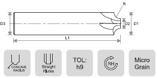 | PRODUCT CODE | RADIUS | CUTTER DIA | FRONTDIA | SHANK DIA | OVERALL LENTGH |