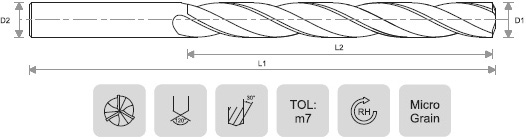 | PRODUCT CODE | DRILL DIA | FLUTE LENGTH | OVERALL LENGTH | SHANK DIA |