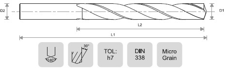 | PRODUCT CODE | DRILL DIA | FLUTE LENGTH | OVERALL LENGTH | SHANK DIA |