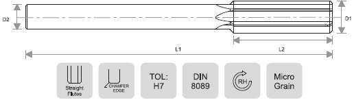 | PRODUCT CODE | REAMER DIA | FLUTE LENGTH | OVERALL LENGTH | SHANK DIA | NO. OF TEETH |